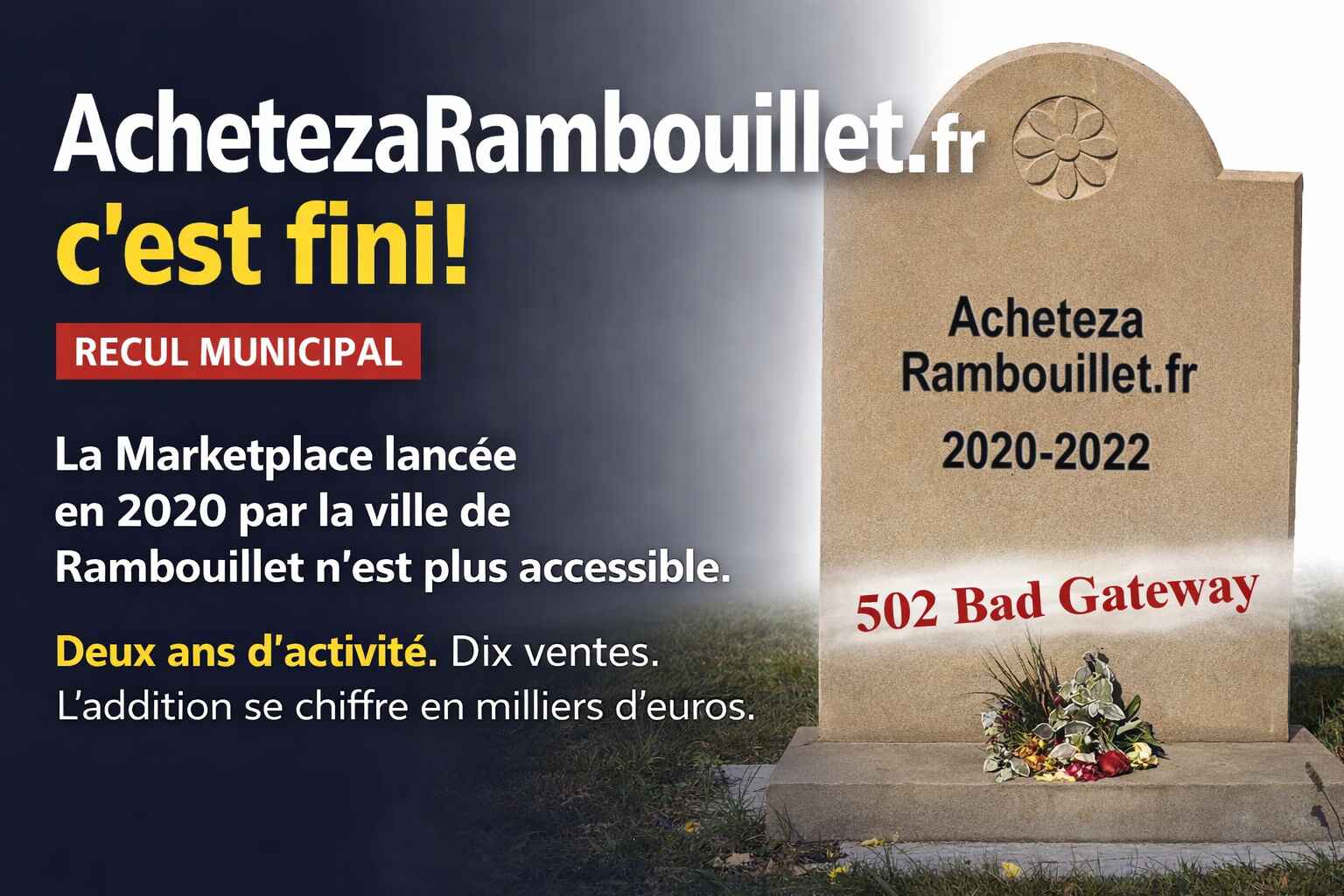 La Marketplace lancée à grands renforts de communication en 2020 par la ville de Rambouillet n’est plus accessible. A l’heure où j’écris ces lignes, l’adresse Url renvoie le message « 502 Bad Gateway ». Cela fait déjà plusieurs mois, ce n’est pas bon signe. Le site de vente en ligne dédié aux commerces Rambolitains a probablement tiré définitivement et discrètement sa révérence, même si d’une façon paradoxale la ville continue à en faire encore la promotion sur son site Internet.
