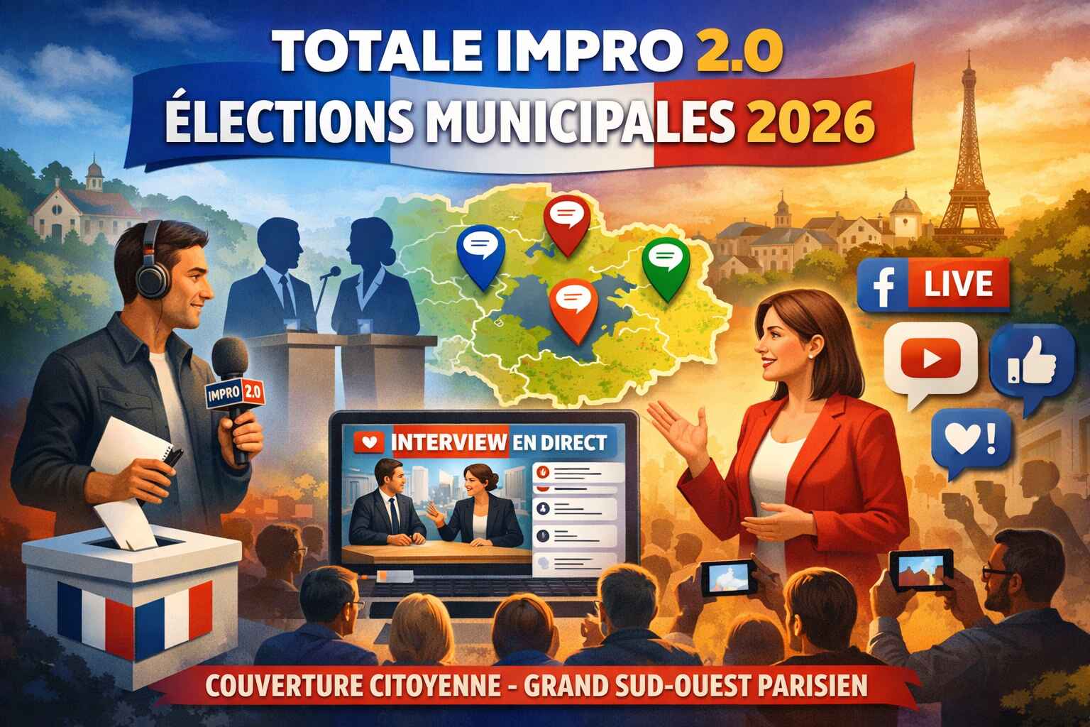 ▪️ À l’approche des élections municipales de mars 2026, Totale Impro 2.0 reconduit son dispositif de couverture électorale pour le Grand Sud-Ouest Parisien et au-delà. Notre objectif : donner la parole aux candidats et permettre aux citoyens de s’informer directement.